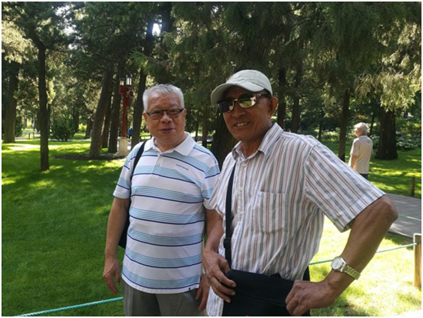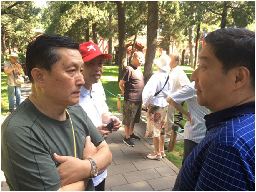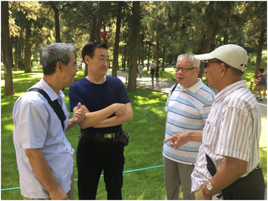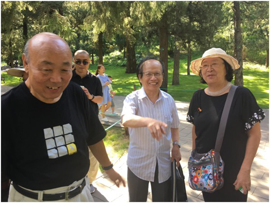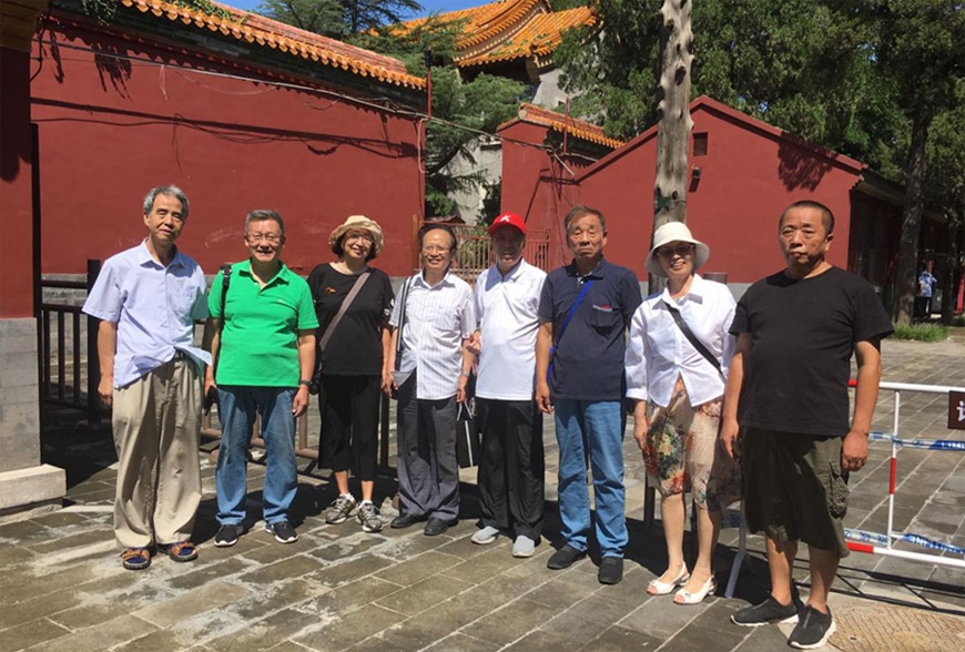 上午9点半许,大家陆续齐聚寿皇殿门前,其中就有当年在少年宫国际象棋班担任校外辅导员的徐家亮先生,以及当年的学员恽壮、张连成、贾惠泉、葛肖雄、罗运纬、罗运紘、祖凤玉、刘明山、姚振章、李怀俊、柳燕生、刘明山、杨菊芳等13位老学员。